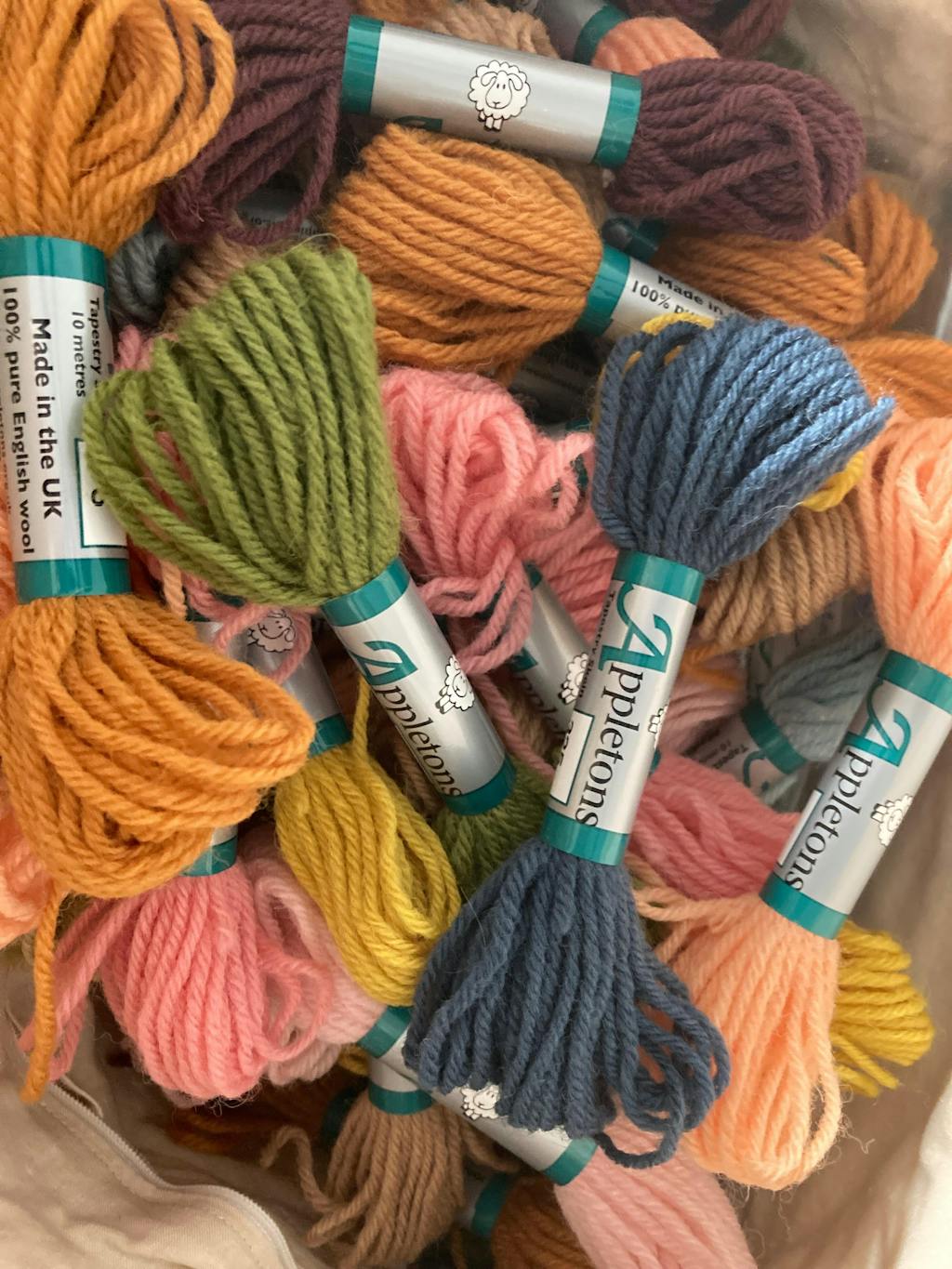 Dive into the depths of creativity with Appletons Wool Yarn in Dull Marine Blue shades 321 to 328. Made from the finest English wool, this premium yarn is celebrated for its exceptional durability, luminous luster, and steadfast colorfastness. The long-staple English wool provides a soft, silky texture, enhancing the ease and quality of your work. Available in crewel (2 ply) and tapestry (4 ply) weights, it offers versatility for a range of projects. Upholding sustainable practices, Appletons Wool Yarn is produced using natural fibers and is free from harmful chemicals, ensuring environmental and user safety. Ideal for both beginners and seasoned artists, this yarn ensures a superior crafting experience with its quality and diverse color palette. Discover our Appletons Wool Collection and select the perfect shade with our Shade Cardsā